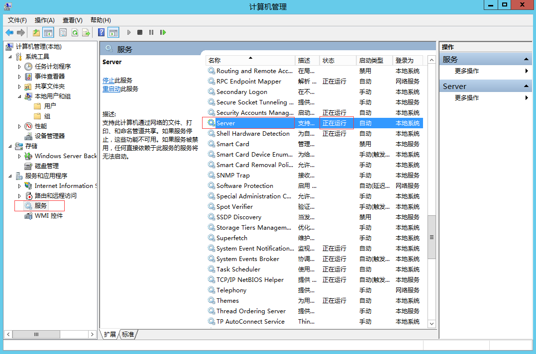 (2)请确保Windows的【Server】服务和【Workstation】服务处于【正在运行】状态,如下图: