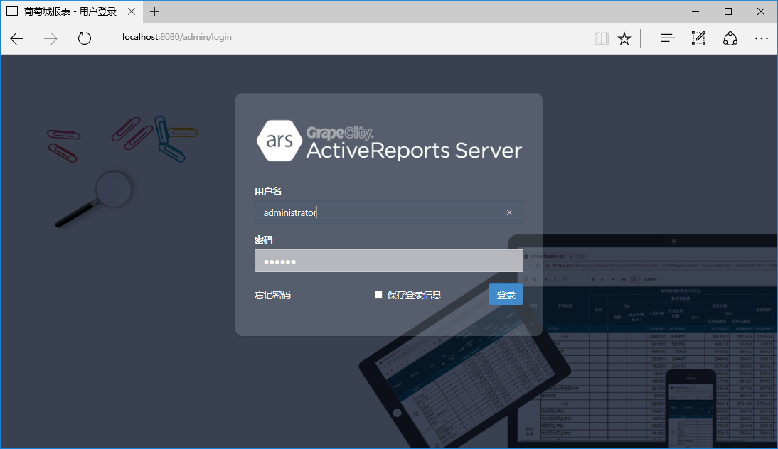 请用浏览器打开系统管理门户(http://localhost:8080/admin)。您首先看到的将是登录页面: