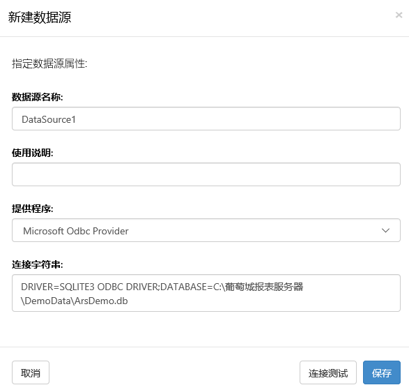 DRIVER=SQLITE3 ODBC DRIVER;DATABASE=C:\葡萄城报表服务器\DemoData\ArsDemo.db