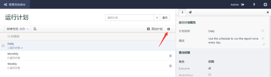 (1)在管理员控制台页面点击左侧菜单中的【运行计划】,列出现有的运行计划清单。