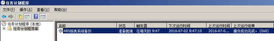 展开【任务计划程序集】,检查【ARS报表系统备份】的【上次运行结果】是否为"操作成功完成"。如果不是,请与葡萄城技术服务部门联系。