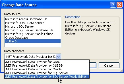 SQL Server 移动版的.NET Framework 数据提供者(.NET Framework Data Provider for SQL Server Mobile Edition)。