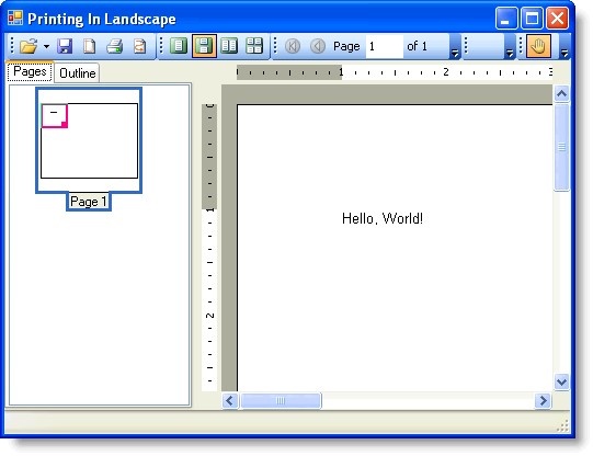 - 找到Orientation字段并选择Landscape选项。您的C1PrintDocument将显示为横向,并将横向打印。