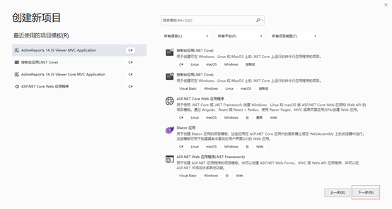 ActiveReports14在Visual Studio中提供JS-Viewer MVC的核心模板,在新建MVC项目的时候只需要简单的一键添加就可以直接集成到项目中。