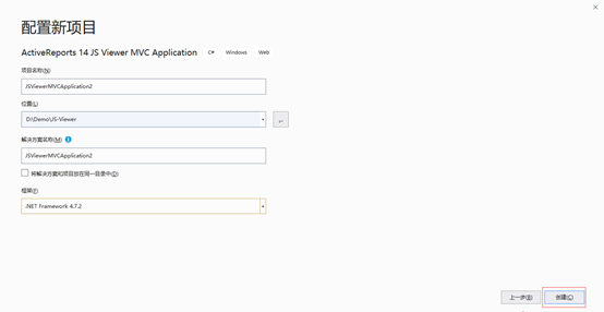 1、 打开VS2019,然后创建一个新的ActiveReports 14 JS Viewer MVC Application project.