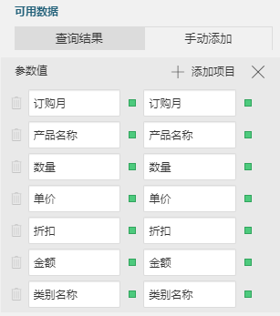 设置参数名称及可用数据,可用数据设置为列名 【值】【标签】,设置如下