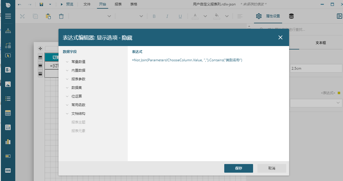 =Not Join(Parameters!ChooseColumn.Value, ",").Contains("订购月")