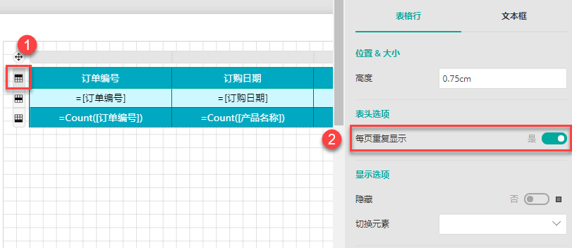 您可以通过此属性的开启或关闭来控制是否重复显示表头。