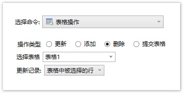 选择操作类型为“删除”,选择要更新数据的表格后,更新记录为默认的“表格中被选择的行”,如下图所示。