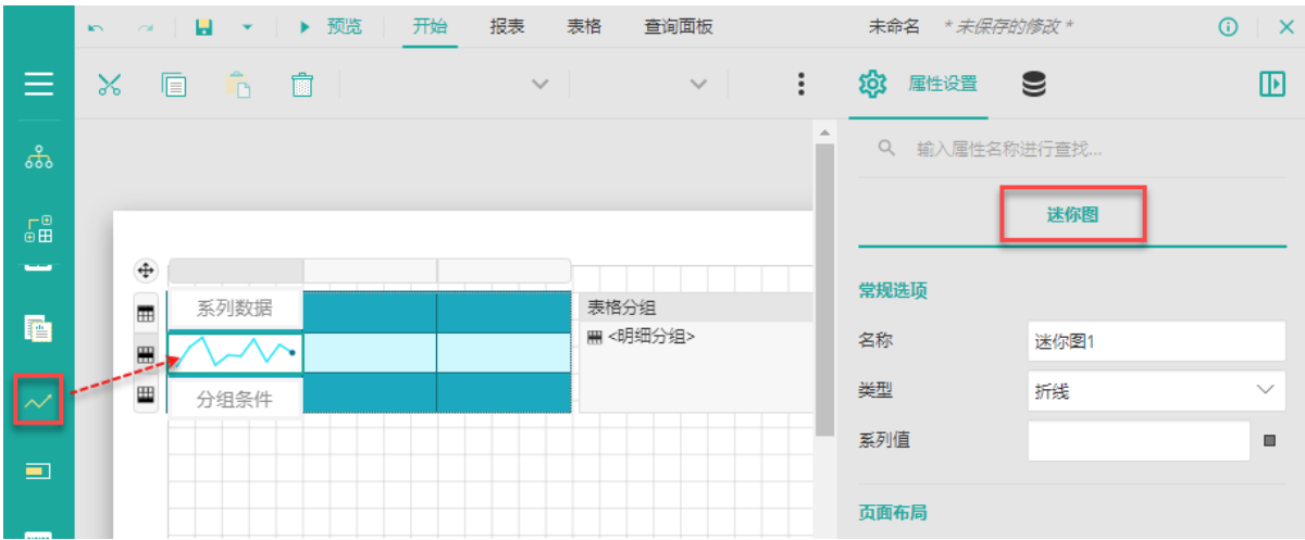 表格的单元格内默认是一个文本框组件,我们也可以将其他组件(如迷你图等)通过拖拽的方式添加至单元格内,这样单元格的类型就不再是文本框,而是具体的组件。