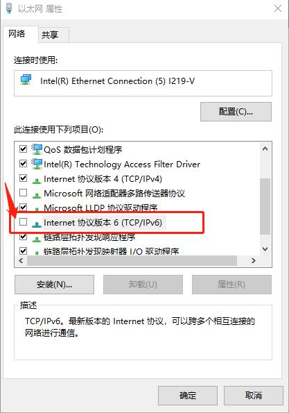 请尝试禁用网卡TCP/IP设置的IPv6绑定设置。