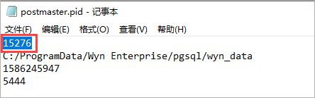 (1) 找到 C:\ProgramData\Wyn\pgsql\wyn_data 文件夹下的postmaster.pid文件,如下图: