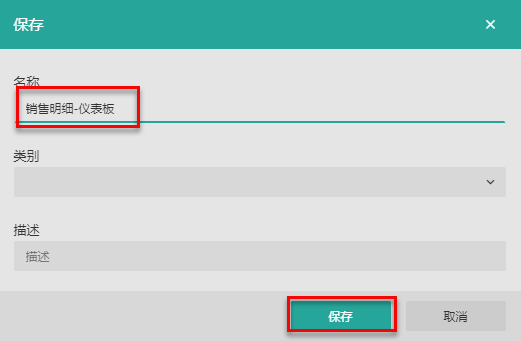 单击数据集编辑页面上方的“保存”按钮,然后在弹出的提示框中输入数据集的名称并保存。