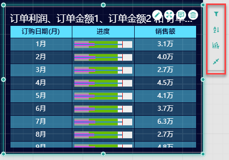 KPI矩阵还支持非常丰富的数据探索分析能力,可为您的数据可视化分析过程提供强有力的支撑。比如为透视表添加过滤器、排序、排名等。