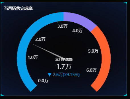 如下图所示使用仪表盘组件显示了当月的销售业绩情况,直观的统计当前月份的销量和完成率