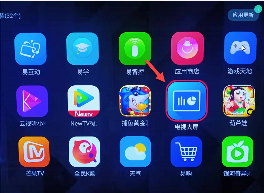 (3) 安装完成后,在电视的应用程序中会看到APP启动图标。