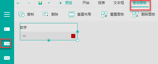 (2) 进入查询面板,单击添加一个数字控件。