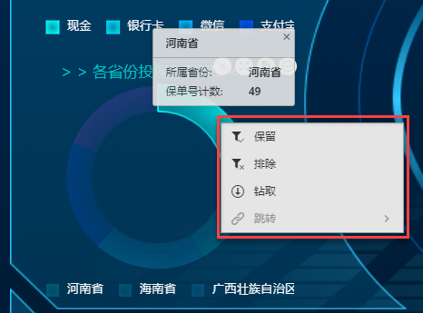比如选择“保留”,那么在预览仪表板时,在组件中单击数据点时则直接执行“保留”操作。
