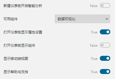 如果将此设置项设置为“True”,那么新建仪表板时将默认以智能分析向导的方式创建组件。有关智能分析的更多介绍,请见使用智能分析向导
