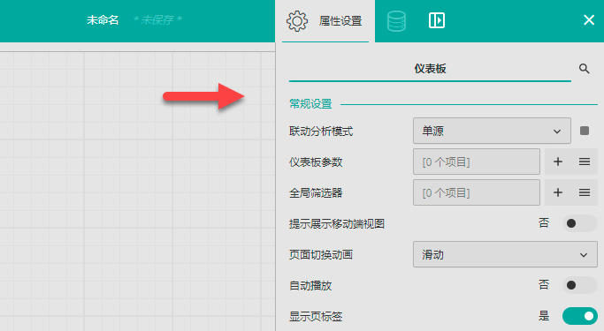 打开此开关后,新建仪表板时将默认展开属性设置面板。
