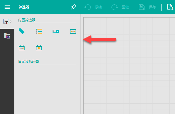 设置仪表板设计器左侧工具箱中可用的功能,设计器中将仅显示勾选的项目。