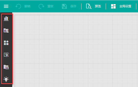 打开此开关后,新建仪表板时将配合已有的模块,展开左侧工具箱。