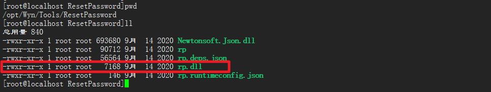 (1) 在Wyn 安装目录中找到重置工具 rp.dll(默认路径为:/opt/Wyn/Tools/ResetPassword/)。
