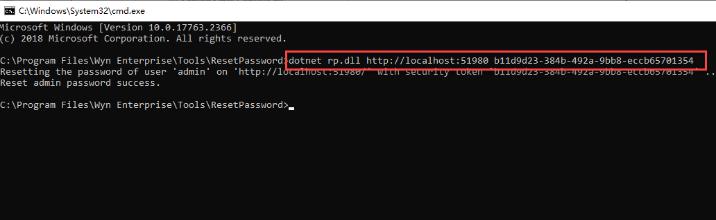 (2) 打开cmd窗口,进入该工具所在的目录,执行命令:dotnet rp.dll “IdentityServerURL” “SecurityToken”即可。