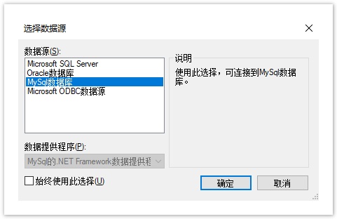 在选择数据源对话框中,选择您要创建外联表副本的数据库类型。