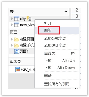 选择一个外联表副本,右击,在右键菜单中选择“刷新”。