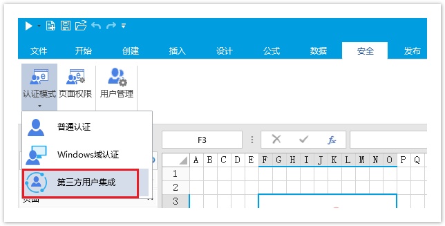 在活字格设计器中,选择认证模式为“第三方用户集成”,发布后即可实现自定义的用户安全程序。