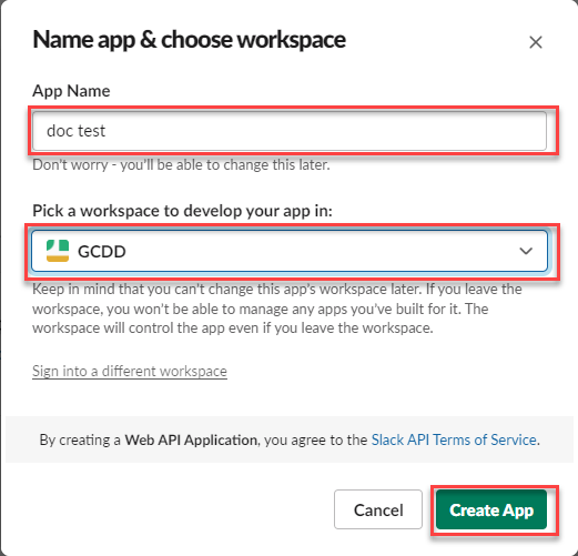 输入应用名称,选择工作区,然后创建App。