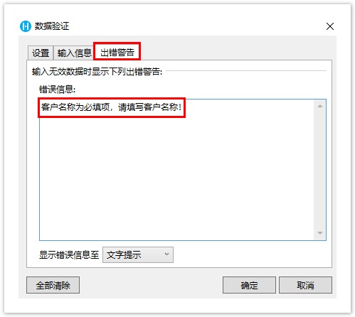 图4  设置出错警告