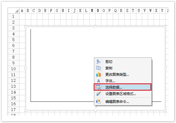 创建一个空图表后,选择图表,右击,在右键菜单中选择“选择数据”,弹出选择数据对话框。