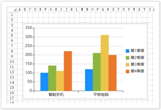 在以单元格为数据源时,活字格的图表操作与Excel的操作基本一致。下面详细介绍以单元格为数据源插入图表及其设置。