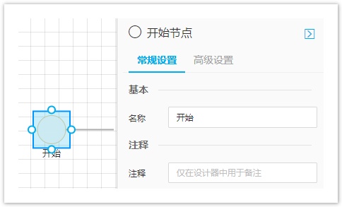 开始节点表示流程的开始。一个流程中有且只能有一个开始节点。