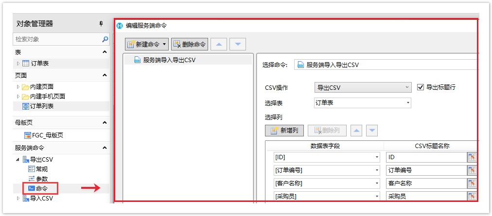 创建服务端命令后,在对象管理器中就可以看到创建的所有服务端命令。