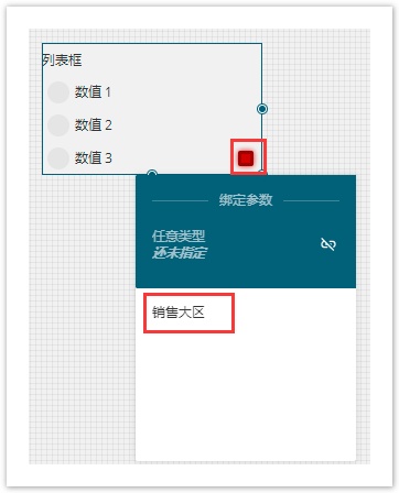 方法一:单击控件旁的红色按钮,下拉窗口中将显示可用的参数,单击需要的参数即可完成绑定。