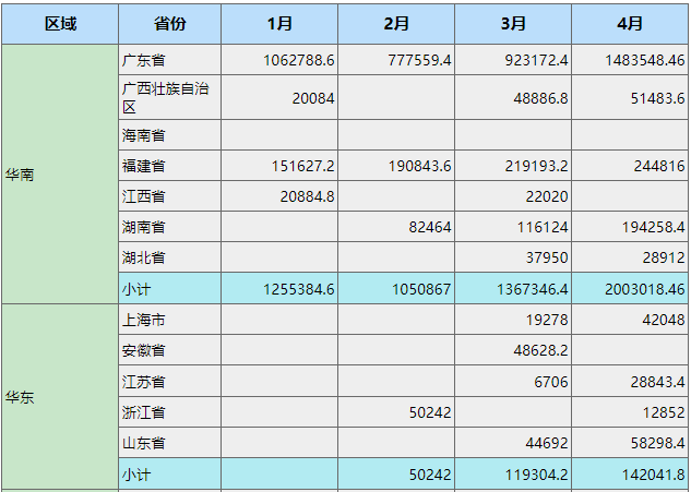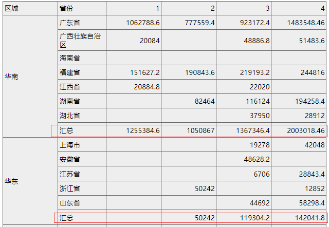 对【省份】做同样的操作,可实现区域、省份两级汇总统计。预览效果如下图: