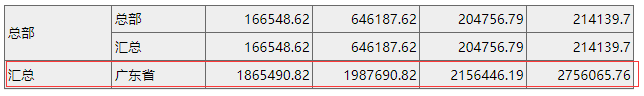 其中,所有区域的总计数值显示在表格最后一行,如下图: